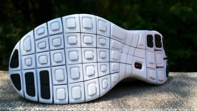 鞋底有nike+标志,有计步器(POD)插槽,可以与手机APP连接,记步或是估算里程和速度。