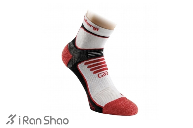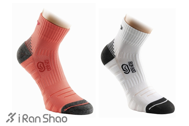 这款袜子是近期中高端的款式,也是我最喜欢的袜子之一,化纤材质中腰设计,脚前端和后跟都有双层锦纶,因此对脚踝、脚趾、后跟均有不同程度的保护,可以有效减少脚趾间的摩擦降低水泡产生的几率,袜子内部的足弓下方部位有特别设计,形如肌肉纤维及肌肉网的压力线,增强了袜子对足弓的支撑,穿着时能明显感觉到极强的包裹性,该款袜子亦有区分左右脚的针织技术,使袜子更为贴合脚部避免在运动中的移位,虽然脚趾及后跟位置有双层锦纶,但从整体上讲袜子还是属于比较轻薄的,能够快速排汗及散热,本人的穿着体验还是偶有水泡发生,总体说它是一款可以胜任马拉松距离跑步的袜子,我也穿着这款袜子参加过多场次的马拉松赛事。