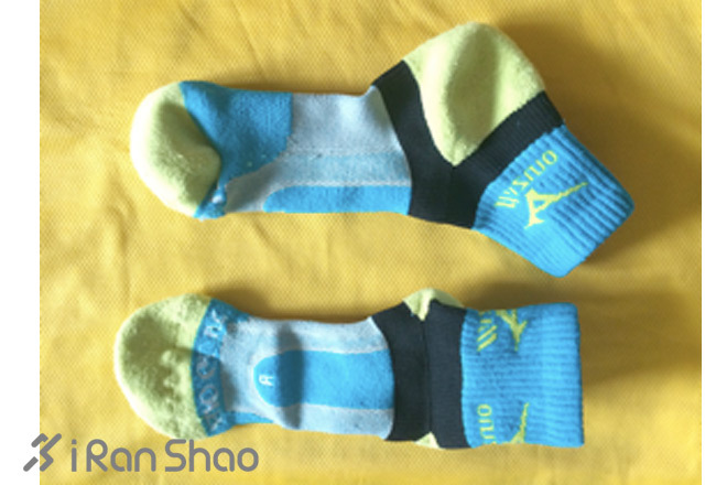 这款袜子找不到网络图片了,拍张旧袜子放上来,这是我继Kalenji之后穿过的第二款有区分左右脚的袜子,说是训练袜,其实我都是跑步穿,dri fit的化纤快干材质使穿着更为舒适,低帮设计对脚踝没什么帮助,袜子整体来说比较厚实,略有缓震功能,并且内里松软的线圈儿可以很好的保护双脚,降低摩擦引起的水泡几率,但是尽管如此,在我的穿着体验过程中仍无可完全避免水泡现象,袜子的中足也有加固以起到支撑足弓的作用,上脚感觉包裹性较好,我个人偏好较紧的袜子,所以本应穿M码的但也尝试过S码,两个码数都很贴合脚部,跑步时不会产生移位,该款袜子也陪我参加过若干马拉松赛事,是一款适合长距离跑步穿着的袜子,这也是我比较喜欢的袜子之一。