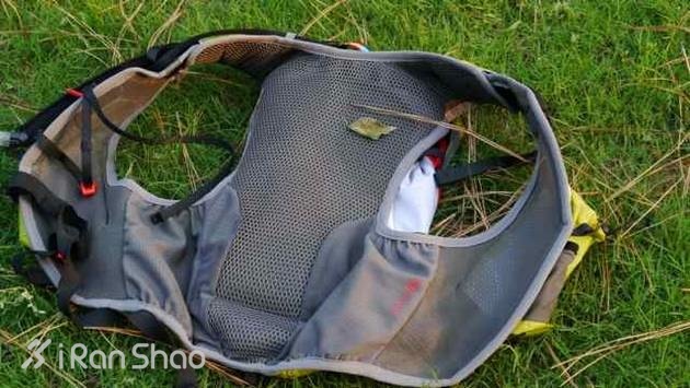 背面采用蜂窝状的材料,组成背负部分,柔软而且贴合。但是在肩带和腰部没有像S-LAB系列一样使用蜂窝状透气隔热材料。只使用了普通的弹力轻质材料。
