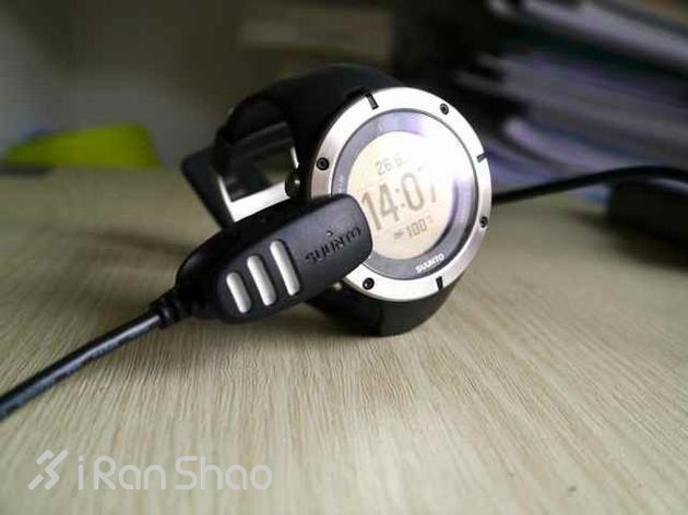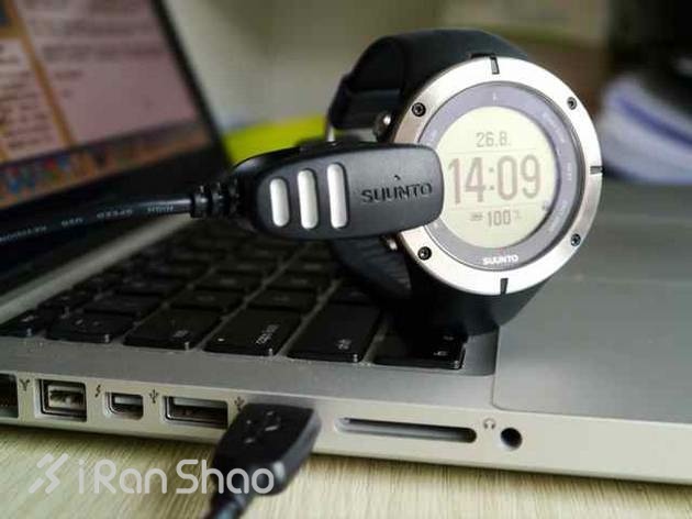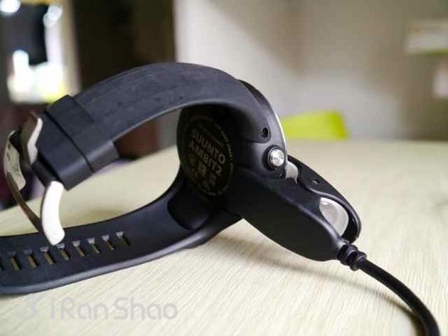 Ambit 2采用USB方式充电,为了保证防水性而没有插口,通过外接的4个触点连接同步线。同步线的另一端为标准USB口,可以连接电脑充电,传输训练数据和同步设置。