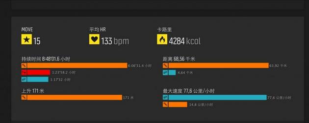 对表电池续航能力通过前9天的佩戴可以有一些直观认识。在7月13日早上充满电开始佩戴,至7月22日。表还剩35%的电。其中训练时间为8小时48分,具体情况如图所示(请忽略那个宇宙游泳速度,肯定是错误数据。)无GPS佩戴为完整的9天。对一般人来说,日常佩戴加训练,一周充一次电足够了。
