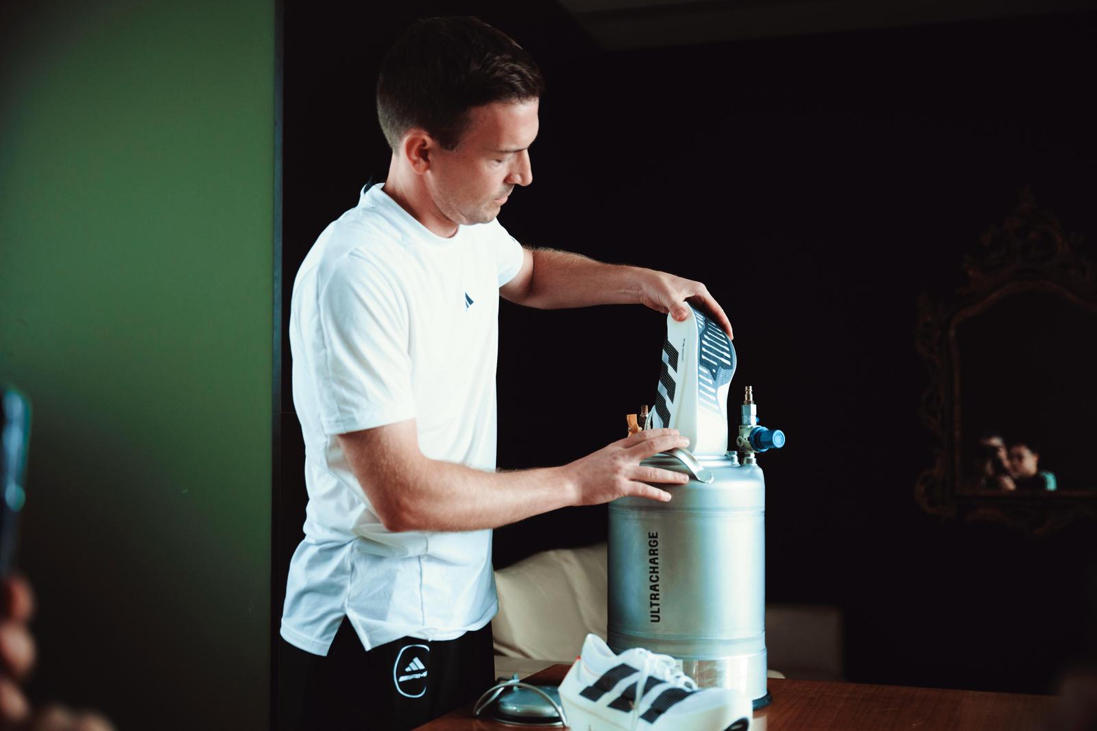 一个源自实验室的疯狂想法,5 位顶级运动员在意大利纳尔多环形赛道,追逐身体的极 限,试图超越人类对跑步的认知。在这场挑战中,adidas 为五位顶尖选手(包括前纪录保 持者立陶宛选手 亚历山大·索罗金 ALEKSANDRSOROKIN、日本选手 福田穣 JOFUKUDA、50英里 世界纪录保持者美国选手 查尔斯·劳伦斯 CHARLIE LAWRENCE、首位男子 50 公里世界纪录保持 者 埃塞俄比亚选手 凯特马·内加萨 KETEMANEGASA 与南非选手西布西索·库布赫卡 SIBUSISO KUBHEKA)定制研发了全套装备,并融入多项突破性创新技术。