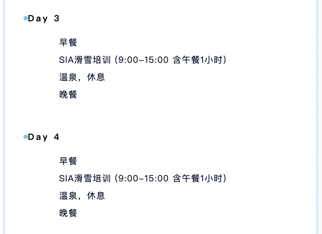 - 4天SIA体系单板或双板培训 (每名教练服务不超过4人)