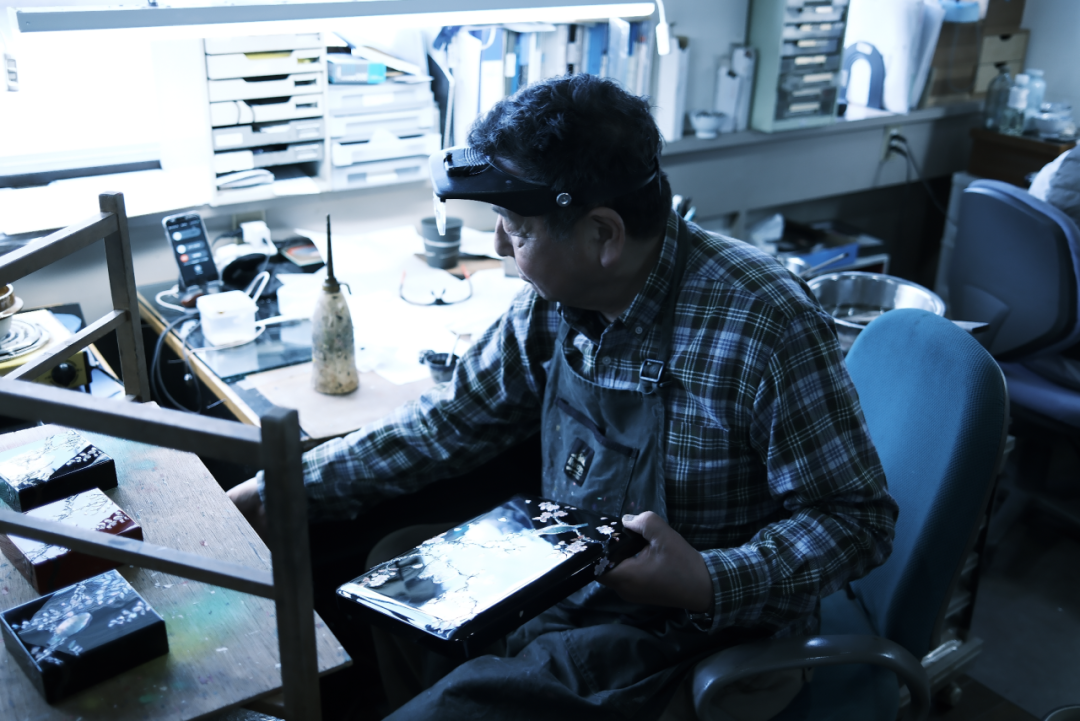武藏川工坊:创立于1910年,以高冈漆器青贝涂工艺为代表的工坊。除了在传统建筑,家具,金属制品中的应用。在目前社长武藏川 刚嗣(四代目)的带领下开启了在玻璃器皿,手机壳等产品上的应用。充分拥抱现代生活。