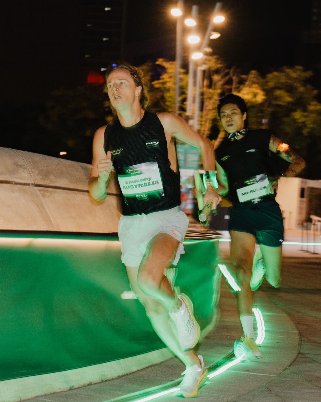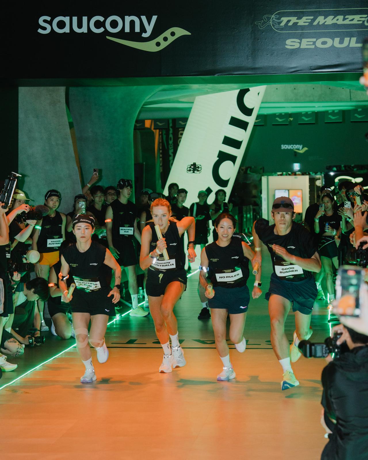 Saucony索康尼 The Maze 首尔接力跑挑战赛冠军澳大利亚队与中国参赛队
