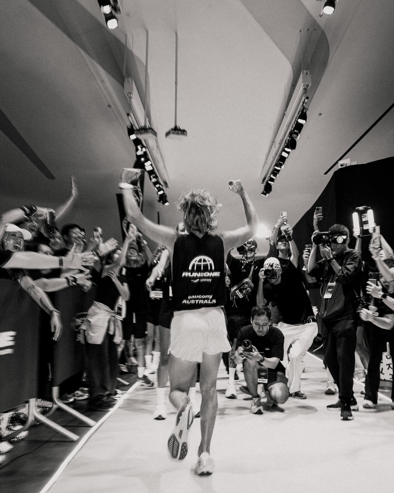 比赛中,所有参赛者均穿着 Saucony索康尼最新一代竞训跑鞋 ENDORPHIN SPEED 啡速 5 ,以 4 人团队形式登场,每位成员完成 500 米绕场赛程,展开多轮激烈接力对决。最终,来自澳大利亚的队伍强势夺冠,赢得直通 2025 年 12 月 Saucony索康尼巴黎埃菲尔铁塔 10 公里跑的入场券。