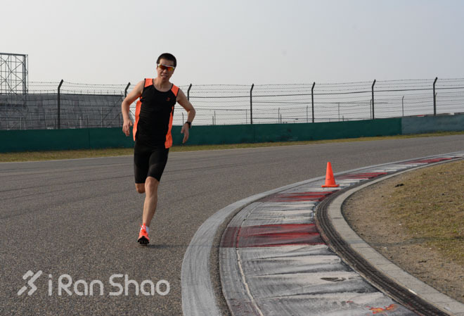 沥青路面平整而又有足够的摩擦力。在这里的弯道半径较大,对跑者来说不需要做过多减速或单边用力。奔跑的感觉与操场上的弯道完全不同,