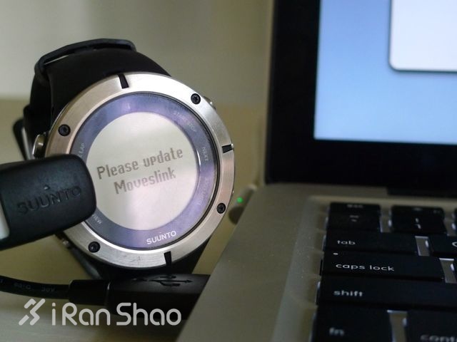同步时表上一直显示 SUUNTO 字样 ,在同步后会突然有个时间白屏,然后如果Movelink的版本不是最新的,手表屏幕会提示更新的。