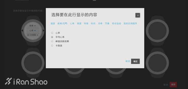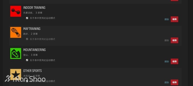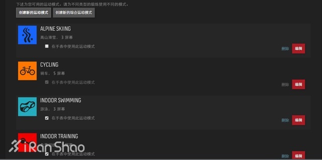 1.先将不需要的运动模式去除。比如将高山滑雪项目,在手表中使用此模式前半的确认框点掉。Ambit 2在手表内支持10种模式,超过这个数量增加新模式需要取消掉一些模式,但是可以存在网站上便于下次调出后同步到手表上。