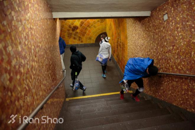 (图:赛后,纽约的地铁里随处可见“步履蹒跚”的完赛者)