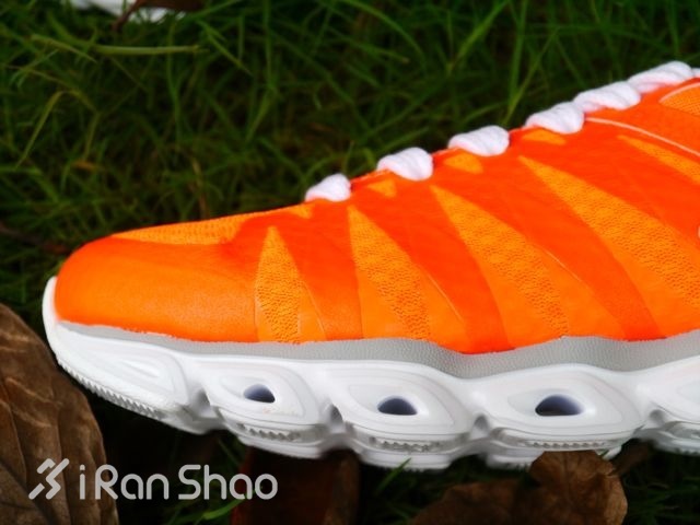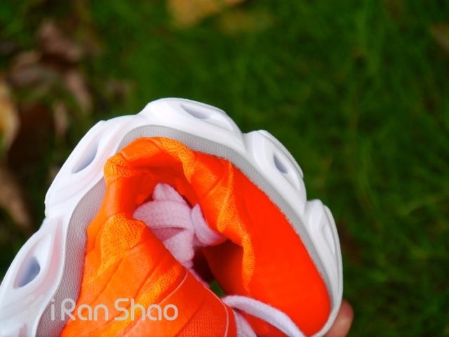 白色泡沫部分中空式的缓震方式是鞋子的特点。弧三代想通过这样的结构来起到支撑和缓震的作用。