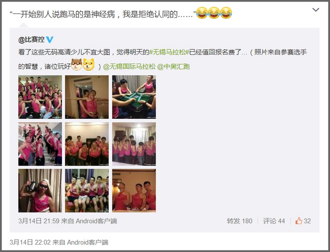 社会的热点聚焦在尿墙雾霾报名难这些话题上,看着与跑步本身毫无关联,可想把马拉松完赛也不是那么容易。每场赛后翻看照片,微笑和扭曲的面孔都是正比的。人们很乐意用马拉松把自己的身体折腾成五十度灰。