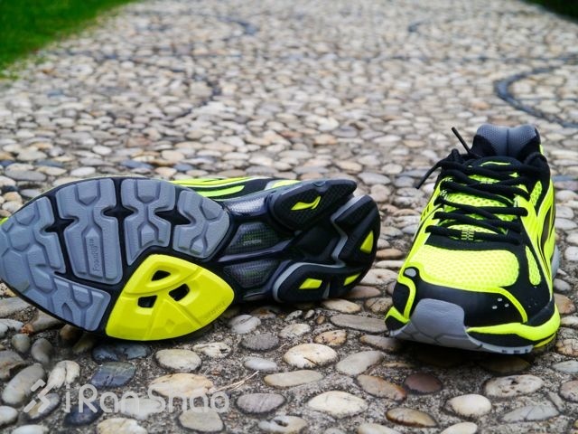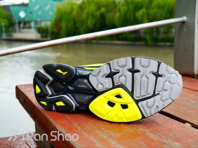 鞋子整体造型比较传统,在外观上没有创新设计,基本遵循传统跑鞋的三层底部设计和鞋面拼接的方式实现。这种结构注定这款鞋将是以局部创新来提升鞋子表现的方式。