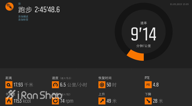 既然专门为跑步量身定做,Suunto Ambit 3R自然有足够能耐分析好你的训练数据,速度、心率、心率区间、恢复时间、卡路里、步频、Vo2max、上升/下降…帮助你发现需要注意和改进的地方。