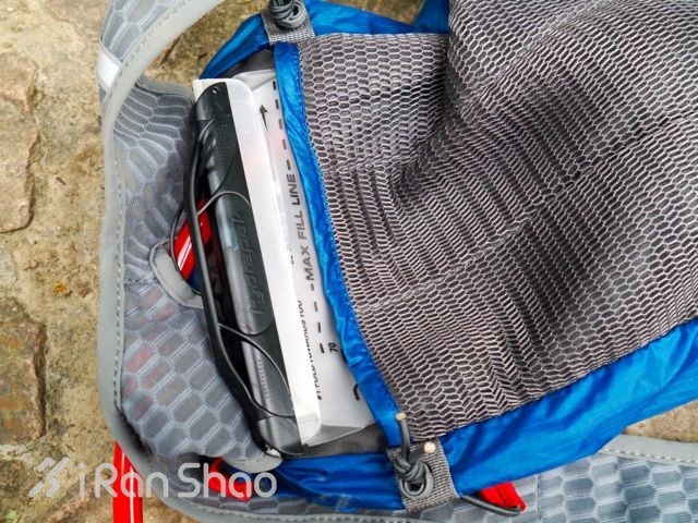 另一侧的口袋可以放水壶,放置好后用带子抽紧。如果与Ultraspire 自己的UltrAspire StemCell 配合更加完美。