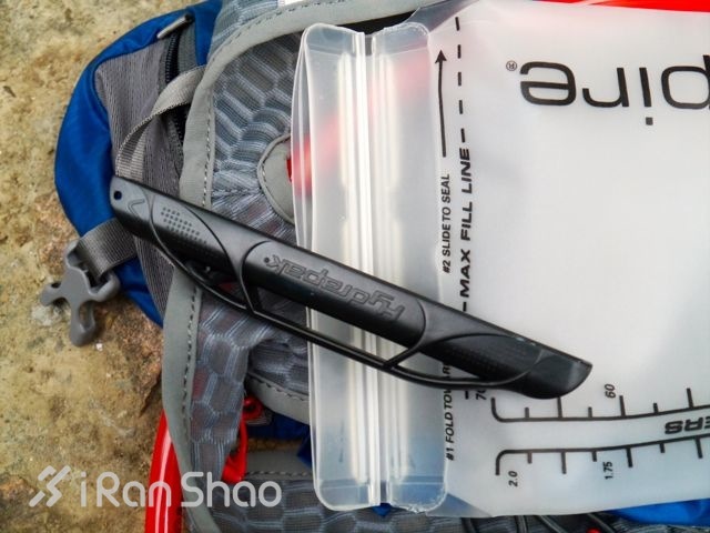 水袋固定处设计了额外的魔术贴,腰带固定处的挂钩都是与大部分背包不同的设计。在使用过程中需要适应,也会浪费时间感觉不便。