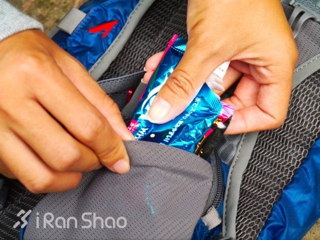 右侧的磁力快开口袋,通过磁铁封闭,可靠,快捷。专门放电解质和盐丸的。如果每小时服用的话,这将是最方便的拿取方式了。