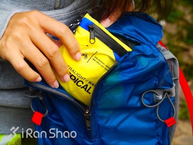 背部的外侧口袋可以放皮肤风衣,头灯等肯定会用到的物品。