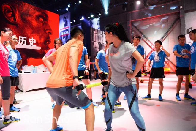 第一项训练是 50 分钟的有氧搏击操,在这 50 分钟里所有人都将一刻不停的挥舞手臂踢着双腿,PUMA 的训练教练介绍说这项训练主要是训练手臂和腿部的力量和协调性。作为旁观者虽然不能直接的感受这种训练的痛苦,但是我看着 N 从最初动作舒展慢慢的动作变缓幅度变小,我知道这很难,手臂大腿臀部无法避免的变酸变硬,N 偷了一会懒,我跟她示意周边一直坚持的人,N 擦擦汗只能继续做。
