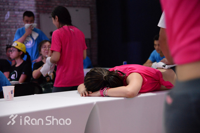 逼迫着他们使用以前身体中从未使用过的地方,逼着他们做着以前并没有怎么做过的动作,在一片片的喊叫声中 20 小时的淘汰赛结束。在走出训练场进入休息去的时候有一个队员和我擦肩而过,他说的那句话让我瞬间就鸡皮疙瘩布满全身,“我快要被榨干了”。