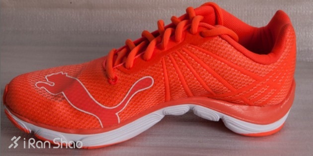 鞋子整体成流线型,前掌翘起,足弓很高。鞋子工艺做工非常精细,不失大品牌风范,鞋身的微量射出起到支撑作用和后跟的保护作用的同时白天可能看不出特别,却暗藏小心机,晚上在灯光下你就会发现这些条条框框都加了反光处理。相对3M 反光单一的颜色,PUMA 这个工艺算是一个很大的创新。不经意间给你惊喜。这也算是配合他的卖点“GLOW夜光”吧。相对某些品牌的反光,这算是“高大上”效果了。因为鞋子足弓过高,整个鞋子后跟后仰,后套(后跟)位没有什么弧度,这个会造成后跟磨脚。