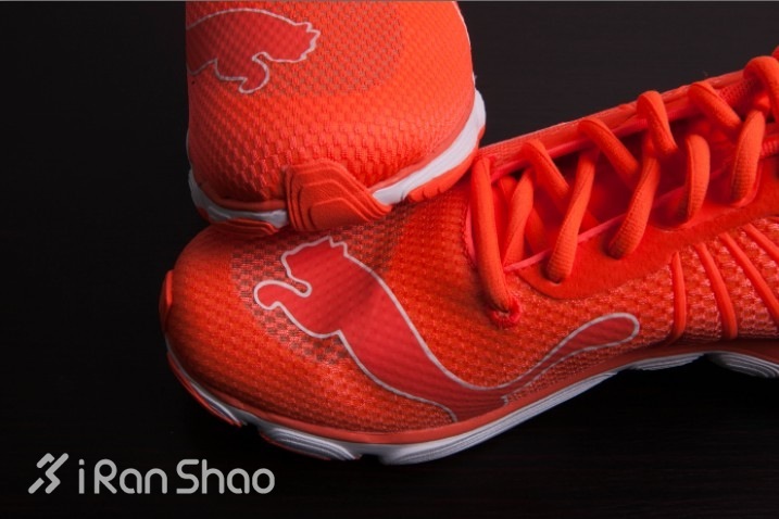 吸取第一代Puma Mobium 用TPU 材质做鞋舌会过硬鞋舌顶脚的麻烦,第二段的鞋舌改为网布,舒适度提高非常多,当然,另外一方面。透气性也会好很多。鞋舌上的“美洲狮”LOGO 也采用了夜光效果。