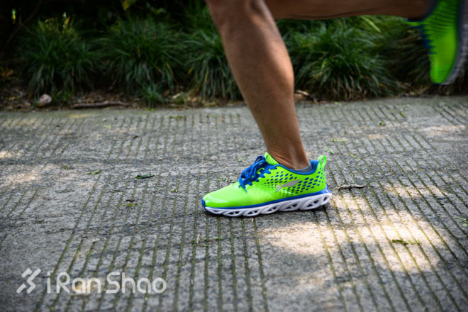 相比塑胶场地,城市路面更硬,同时也会因为不同的路面状况对于双脚带来更多意外的冲击。而弧五代精心重制的弧底也得以最大程度地发挥作用了。由于地面更硬,弧五代鞋底带来的弹力回馈也更加明显。我们粗略地测量了一下弧五代的前后高差,发现其实这是一双高差小于8mm的跑鞋,按照传统跑鞋的区分,这应当是一双更加接近全掌着地方式的跑鞋,而弧形鞋底所带来的全掌缓冲体验也正好迎合了这种全掌的跑步方式。