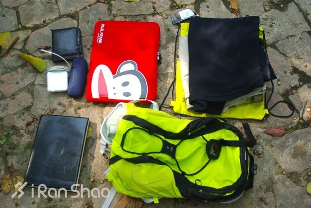 这是跑步上班需要的基本物资。13寸 Macbook Pro 在电脑中不算体积小的。一套换洗衣物。工作笔记本,钱包,眼镜等物品。