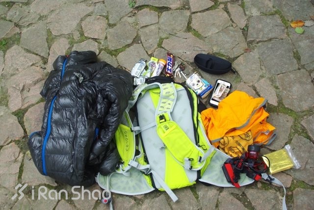 先介绍越野训练时的装备,这里配备了羽绒服等冬衣,目标是在冬季无法存包的长距离拉练。或是补给少的赛事,因此需要携带大量物资。