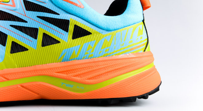 同为意大利企业,TECNICA泰尼卡与Vibram之间的合作自然也是顺理成章,而这也造就XLITE 系列最为经典的越野大底。在雷电 XLITE 3.0的大底上,我们看到了全新设计的蝴蝶纹咬花,相比闪电 XLITE 2.0略为简单的蝴蝶咬花,雷电 XLITE 3.0的设计更为立体,而鞋底的平面也不再像上代那么平整呆板,隐约可见的三角组合暗花与咬花一同保证了鞋底在户外地形下出色的抓地性能,搭配Vibram的MEGAGRIP越野跑独有橡胶配方,实现了雷电 XLITE 3.0在全地形与全气候下都能够具备足够出色的速度体验!