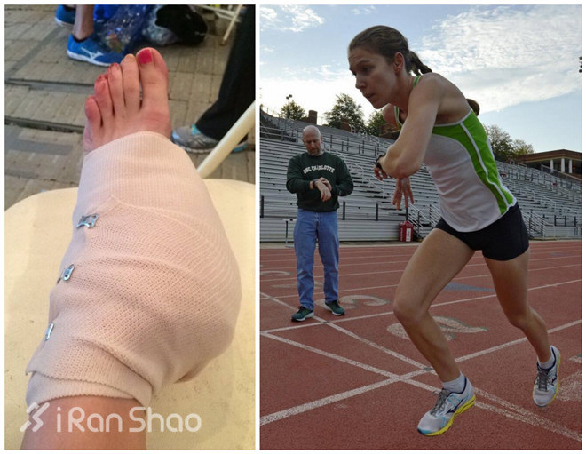 (左边是被纱布缠绕的伤脚现实,右边是昨日为比赛而日复一日的刻苦训练,这心理落差可想而知)