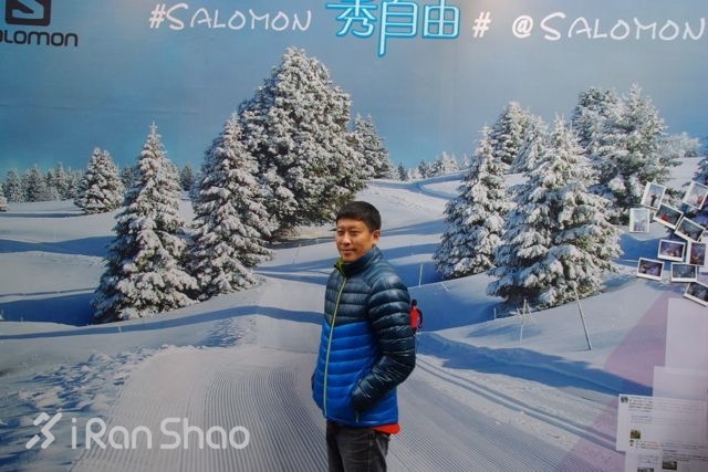 在整个发布会现场配合冬季做了 #Salomon 秀自由# 的冬季主题活动,所有的来宾在注册时都能够试穿今年新款的防风防水羽绒服留影。