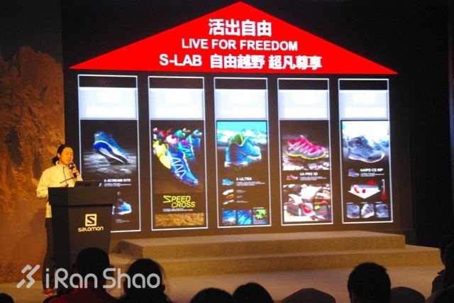 发布会开始后 Salomon 亚太区总裁用中文进行了简短的致辞。Salomon 团队回顾了整个2013年全球和在中国大陆地区取得的良好销售业绩。