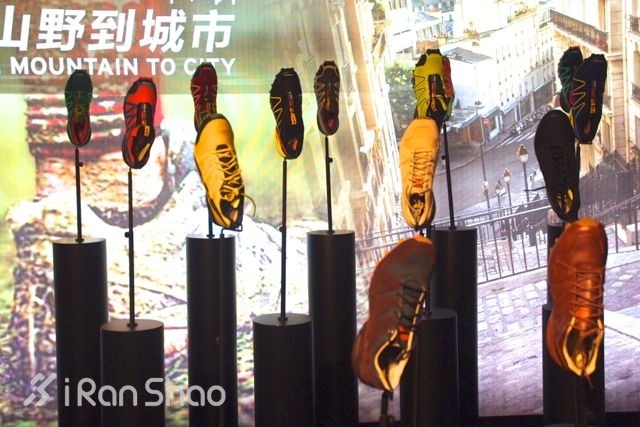 会场中摆满了萨洛蒙(Salomon)即将在明年上市的新产品。主题非常明确:冬季户外产品,城市轻量化越野系列和 XA Pro 3D 鞋子成为场馆内的焦点。