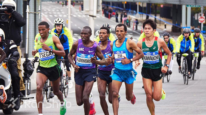 这是去年前两名基普桑、德西萨今年的第三场重大战役,结果他们分别只获得第四(2:12:45)和第三(2:12:10)。今年的冠亚军是两个肯尼亚人:比沃特(Stanley Biwott,2:10:34)和22岁小将坎沃若(Geoffrey Kamworor),2:10:48。