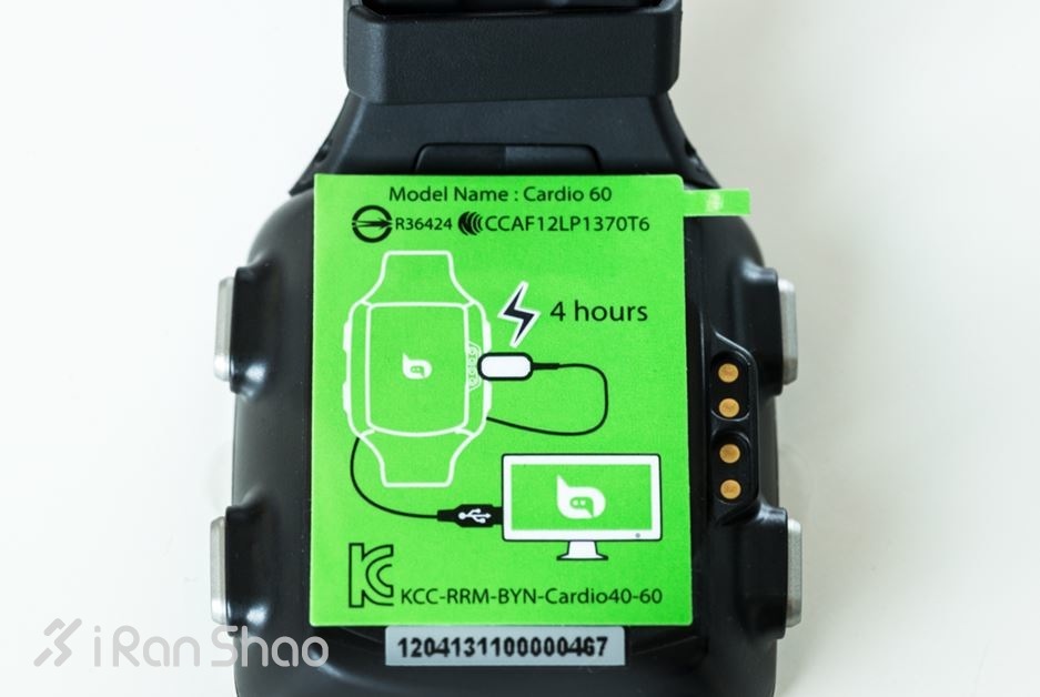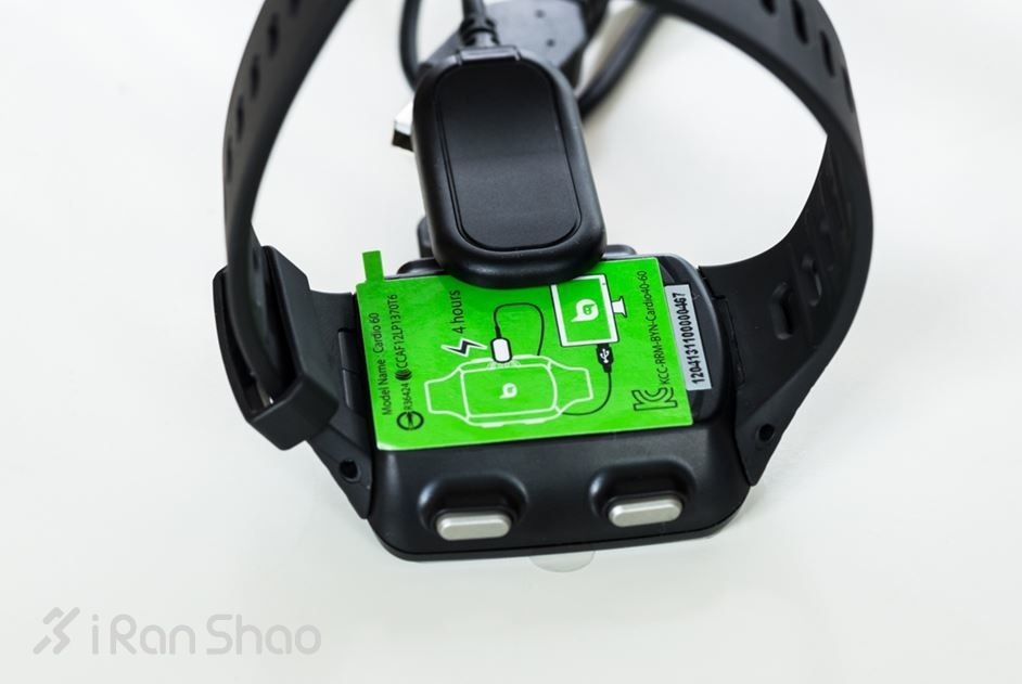背面的标签贴纸显示,首次使用需要进行4小时的充电,内置电池的容量可以提供达到16小时的GPS功能或28天的电子表功能,在同等体积的GPS运动手表中算是不错的持久性了。