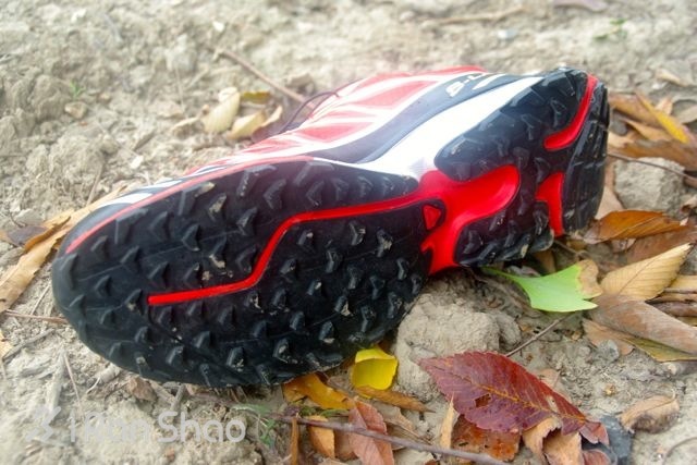鞋底依旧采用的是密集小颗粒、短鞋钉。这种设计偏向竞赛考虑,特点是的速度快,但是抓地力较差,在碎石密集的地方,稳定性不够。算是更接近公路跑鞋的设计。