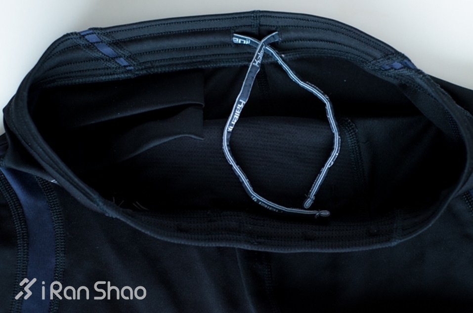 后腰部设有拉链口袋,可以存放补给或是智能设备,足够塞下四根能量棒或是一部水果手机,但由于拉链采用防水自闭的设计所以开合较紧,在运动中存取物品比较困难。