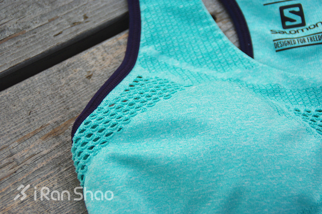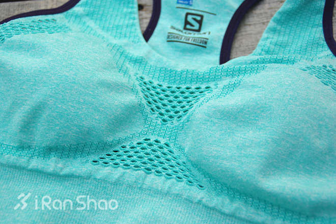 虽说表面看不出什么差别,但穿上身的亲肤体验的确不俗,手感也是柔软细腻。无缝的贴身面料也实实在在地让女性跑者更为安心,不必担心长时间运动而导致的摩擦痕迹和肌肤不适。这一点小编和大部分女跑友都有过惨痛经历,穿着不合适的运动bra跑一个半马以上的距离足以令你的胸部下缘(和bra接触的地方)留下女跑者专享“纹身”,而这个“纹身”一般都能跟着你起码小三年的样子,还丝毫没有要褪色的意思。所以,这方面来讲Salomon这款bra并没有让我失望。