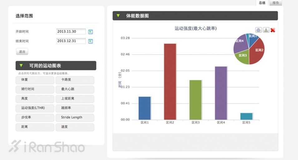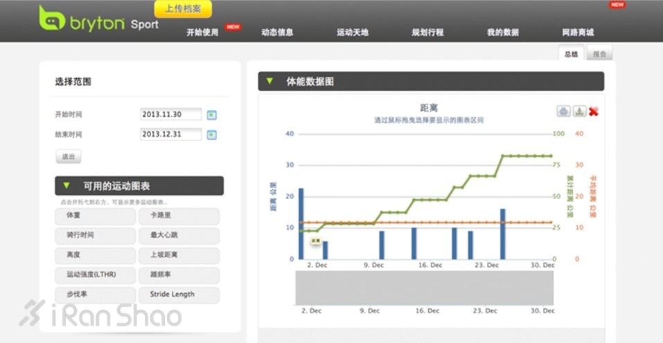 在“我的数据”子目录中还能找到运动数据分析图表的功能,可以自定义阶段内的运动数据分析图表,其中可选的指标基本涵盖了所有的运动数据,可以清楚地呈现出阶段训练的成果。
