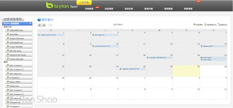 百锐腾 C60 卓越的训练功能同样也在云端后台得以充分体现,日程表的设计可以随意拖拽安排当月训练计划,还可以方便的在云端创建独一无二的训练课程然后同步下载到手表上随时查看。关于训练的具体内容爱燃烧将在稍后详尽介绍。
