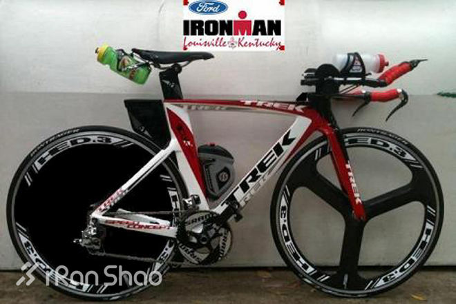 参加铁三比赛,自然要搞辆铁三车。铁三车与一般的公路大组自行车存在一些深刻的区别,这一点取决于比赛形式的差异以及WTC,ITU,国际自联UCI三家主办单位的具体规定。铁三车设计上的主要差别体现在:铁三车具有更大的立管倾角,更短的上管长度,通常装有可变速时间计时赛车把(Time-trial bar or aerobar),配备半封闭或全封闭车轮;其他如车架设计等都充分体现空气动力学原理。而车手的坐姿也更加前倾,目标只有一个——更快!同时,由于整体设计上的变化,铁三车使得选手更多的使用大腿前侧肌肉,这样就为跑步较多使用的腿后部肌肉留有更多的休息空间,利于整体表现。另一方面,铁三车由于刹车与变速器位置的分离,操控性方面远不如公路车,难以应对突如其来的路面情况,并不适合团队骑行;而相对较高的价格门槛(入门级的Argon 18也要将近1万3左右)也让很多囊中羞涩的新手望而却步。