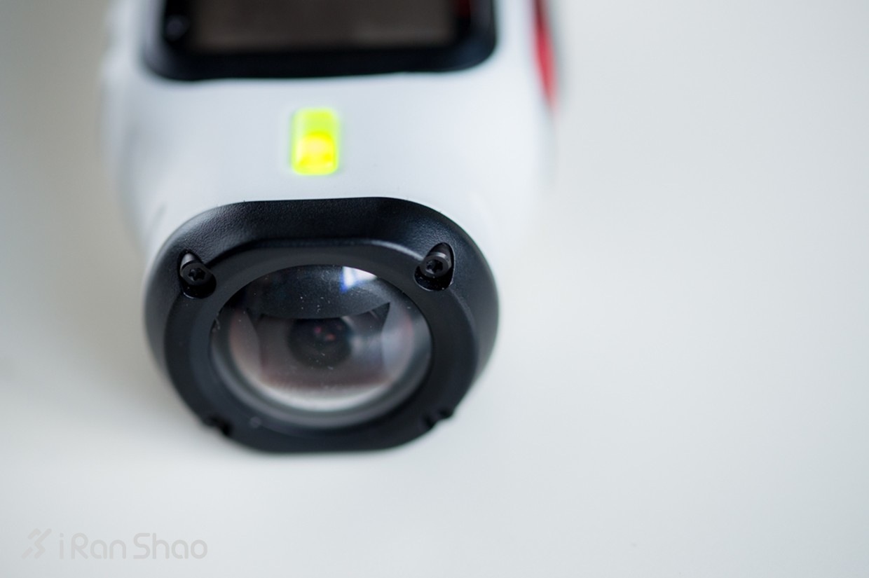 镜头上的指示灯显示Virb的工作状态,开机后待机状态或其他模式显示绿色,拍摄视频时显示红色。