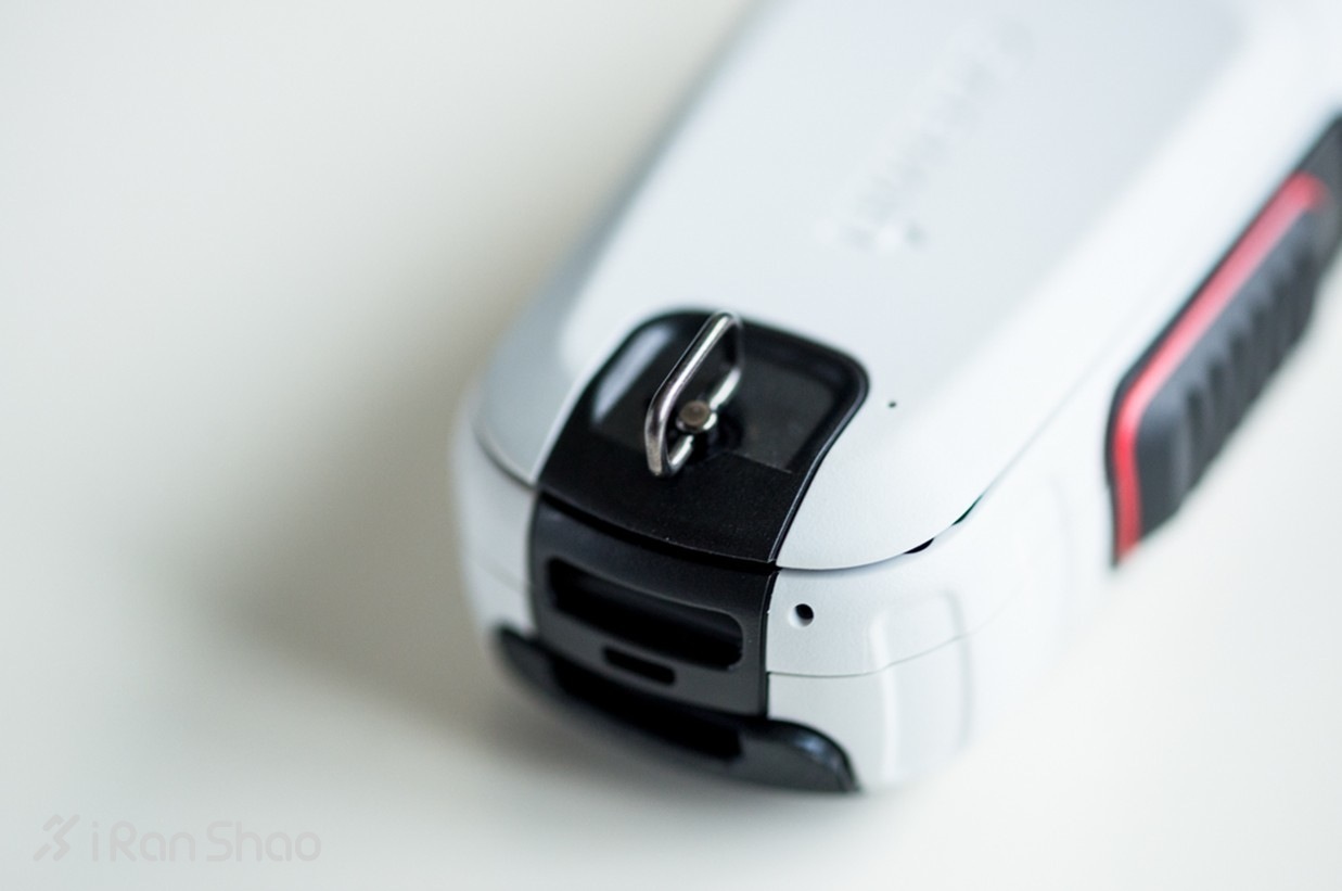 Virb的机身设计与我们通常印象中的运动摄录机似乎不太一样,有时候你或许会感觉这更像一台运动版的行车记录仪或是一个高科技的手电筒,粗纩的外表使的Virb本身就具有了基本的三防功能,无需配件裸机情况下就能轻易实现IPX7(水下一米30秒)的使用强度。