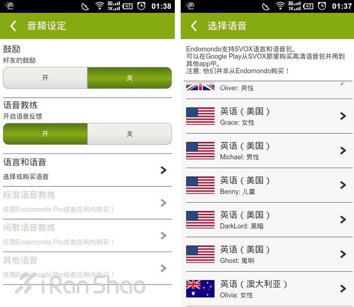 在国外,付费语音包就属于独立于Endomondo之外,由第三方独立制作并发布的相当于外部“插件”的扩展功能。