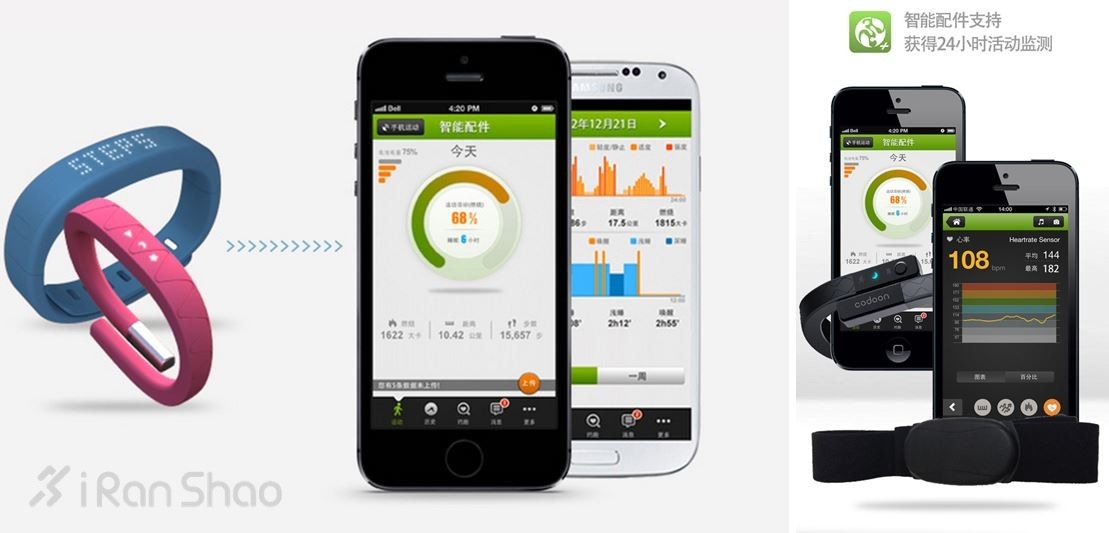 扩展/专业性:除了软件app,咕咚还推出了运动手环这款硬件产品,不知软硬件结合能否得到1+1>2的效果。从目前咕咚产品的定位来看,主要是面对轻量级的运动记录,并没有涉及过多过于复杂的专业功能。