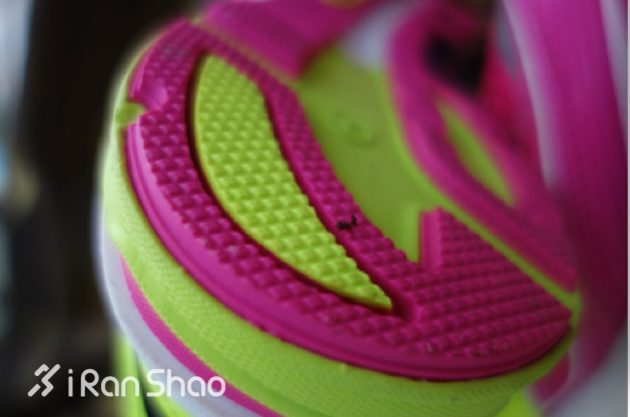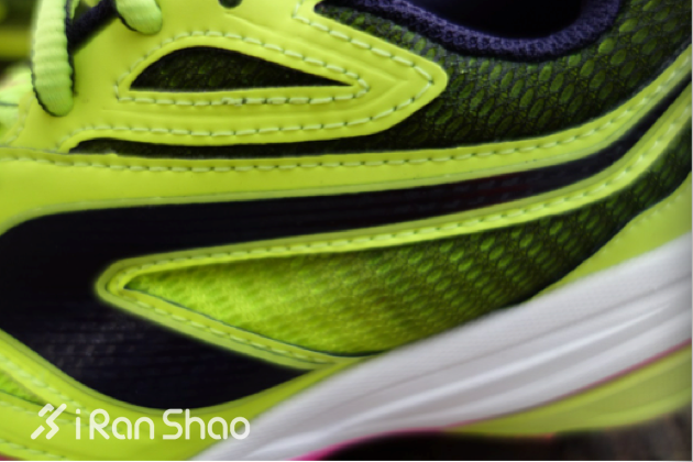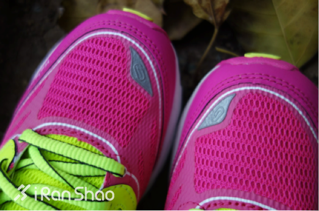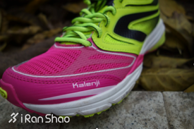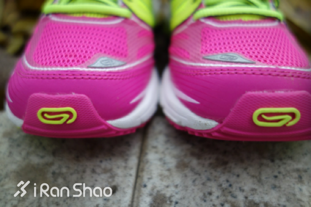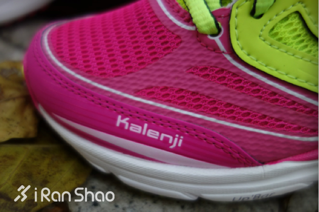 粉红的前片加上印刷凸显质感,“Kalenji”字母非常粉嫩。鞋头网布搭配无车缝工艺,虽然非常低调,但是却大大的增强包裹性和支撑。不得不说的是Kalenji这款鞋子在品质细节上非常注意,一改它廉价而粗糙的感觉。