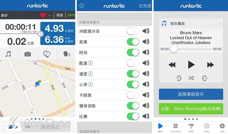 界面: Runtasic pro 的本土化移植比较成功,各个功能的图标按钮都很符合国人的使用习惯。