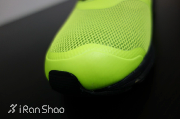 相比“李宁云”跑鞋,“双渡”跑鞋的鞋头空间大了很多。填充加厚效果的鞋头不仅有空间感,经过加厚加固处理后,也起到鞋头防撞的作用。